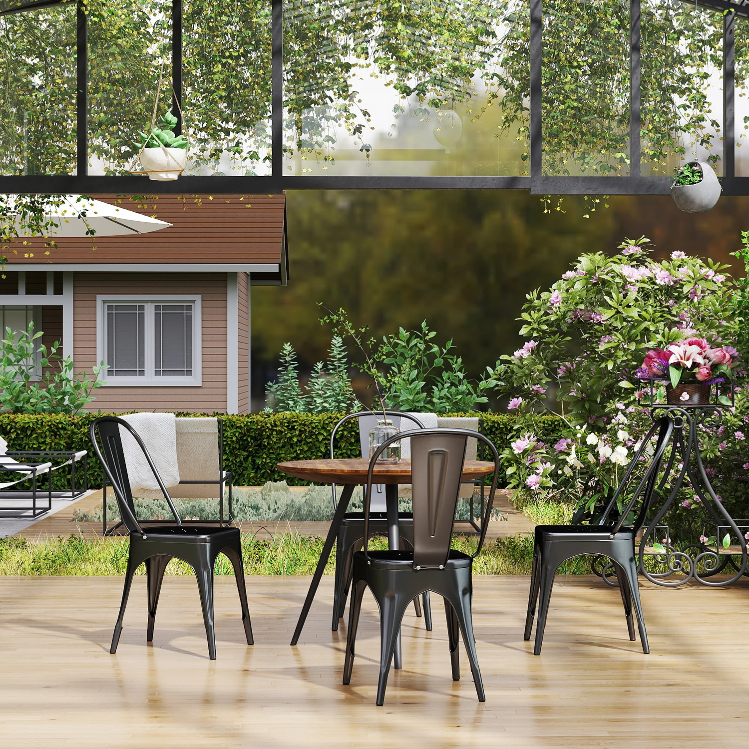 Les chaises en métal sont solides, stables et empilables!
